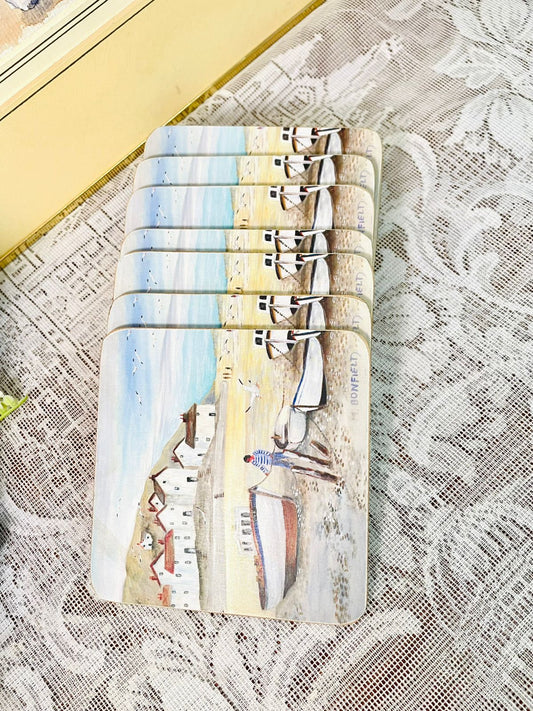 Vintage Coastal Harbor Coaster Set of 8 – Banfield Art