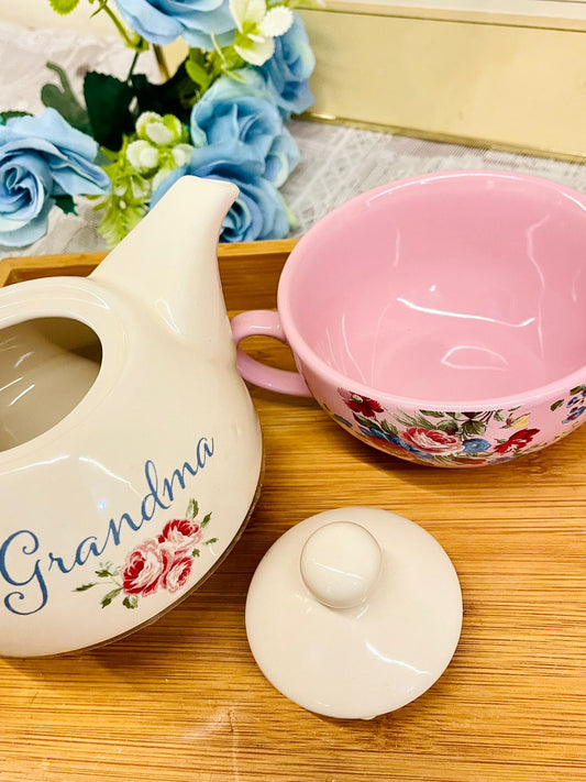 Grandma Floral Porcelain Teapot & Cup – Cottage Tea Decor