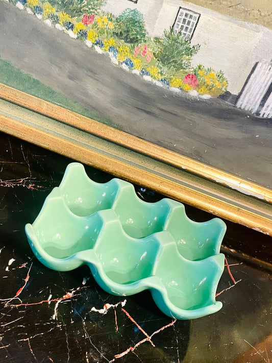 Vintage Ceramic 6-Slot Egg Holder β Glossy Mint Green