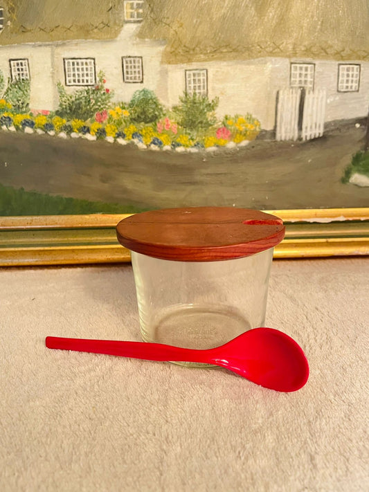 Glass Mini Cellar with Teak Lid & Spoon β Spice, Salt & Sugar Storage Jar