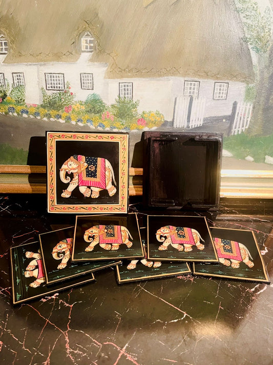Hand-Painted Elephant Coaster Set (6 pcs with Box) β Rajasthani Art Style