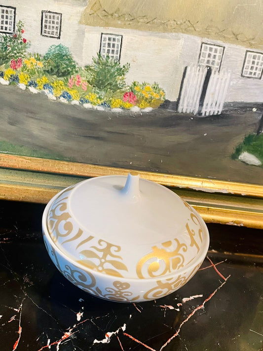 Marks & Spencer Luxury Sugar Bowl β White with Gold Pattern (England)