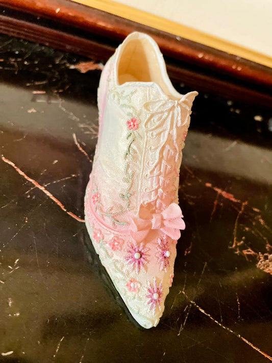 Vintage Victorian-Style Decorative Shoe β Pink Floral Embroidery Design