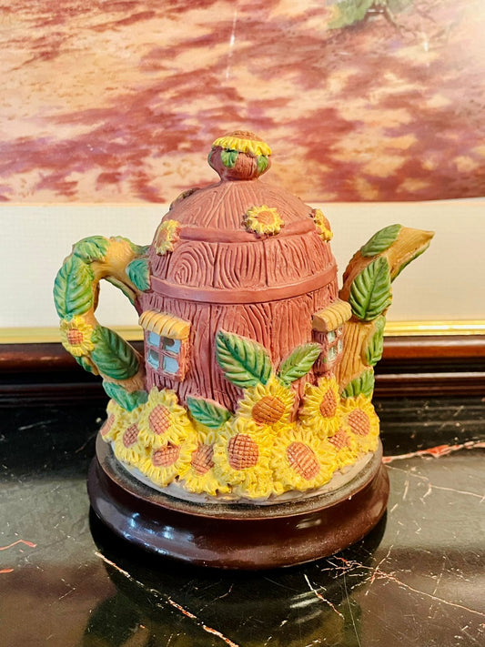 Sunflower Teapot Cottage Figurine β Handcrafted Miniature Home Decor