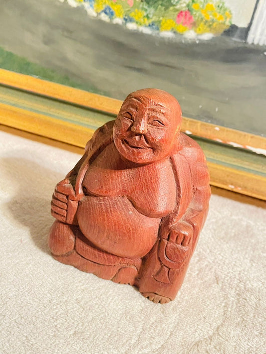 Vintage Hand Carved Wooden Buddha Sitting Statue β Peaceful Collectible DΓ©cor