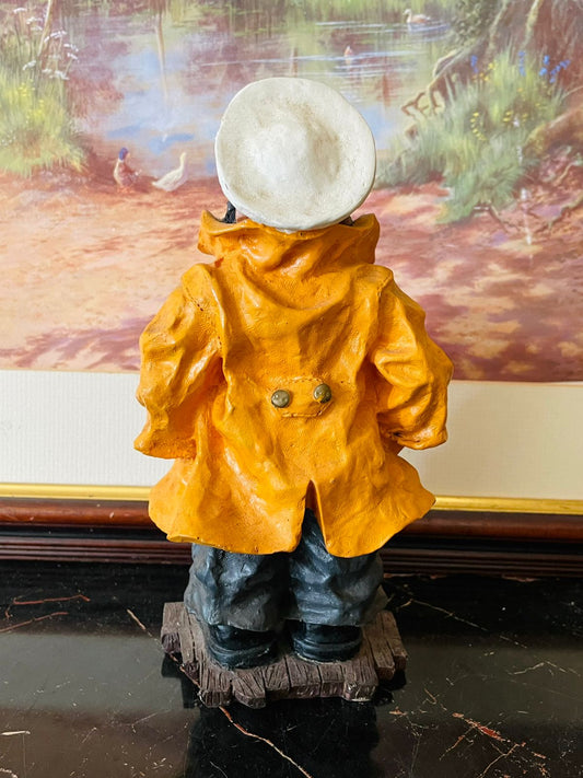 Vintage Nautical Sea Captain Figurine – Yellow Raincoat & Pipe | Maritime Home Decor