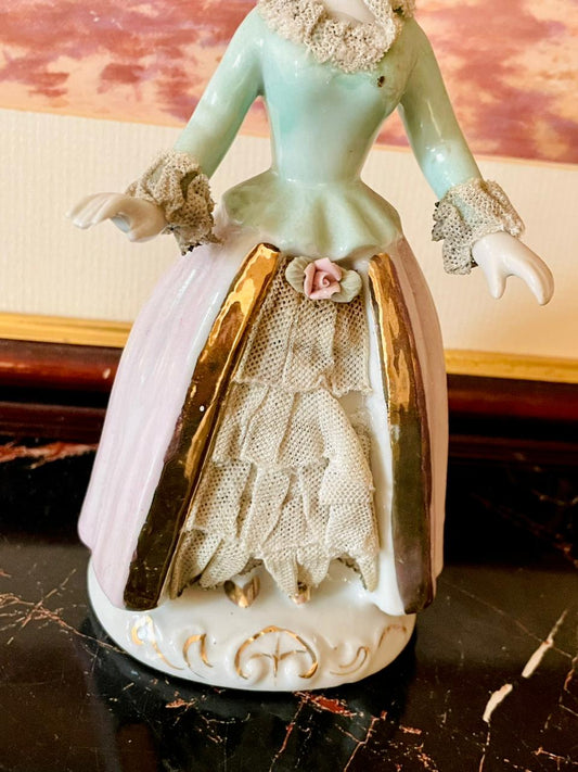 Vintage Porcelain Lady Figurine – Handcrafted with Lace Dress & Gold Trim