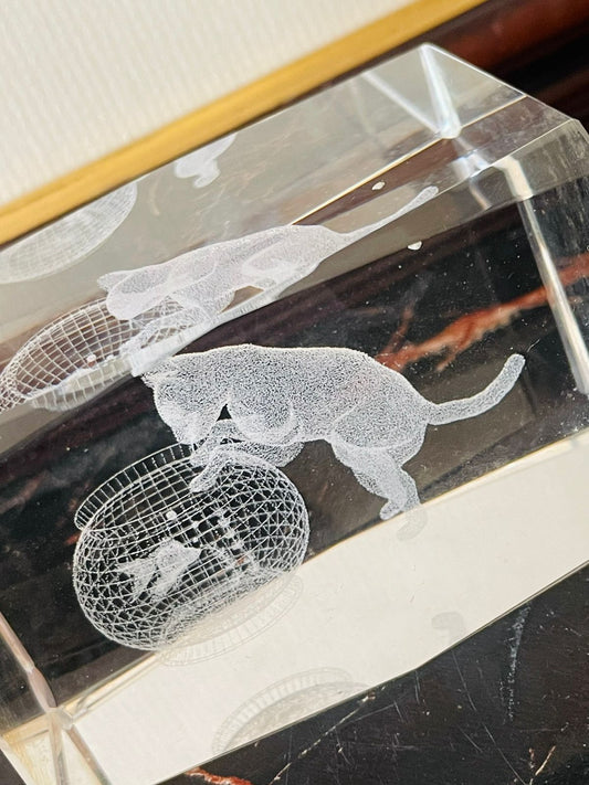 3D Crystal Glass – Cat & Fishbowl Design (In Gift Box), paper weight
