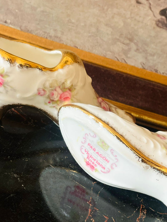 Paragon “Victoriana Rose” Porcelain Shoe Pair – Hand-Gilded English Collectibles