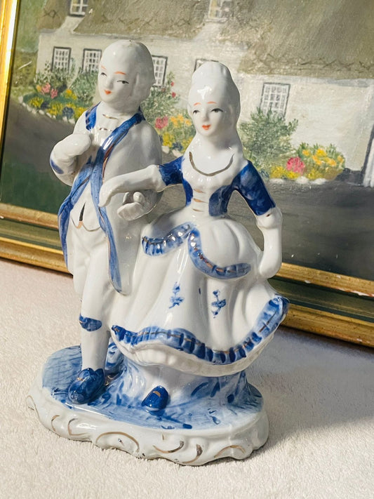Colonial Victorian Couple Porcelain Figurine β Cobalt Blue & White β Vintage Decorative Statue