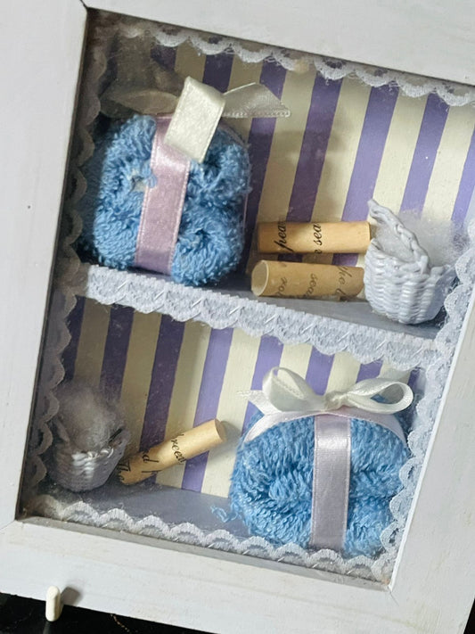 Wall Frame Decor – Blue Towel & Scroll Shadow Box