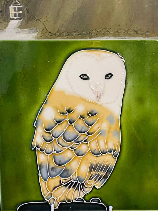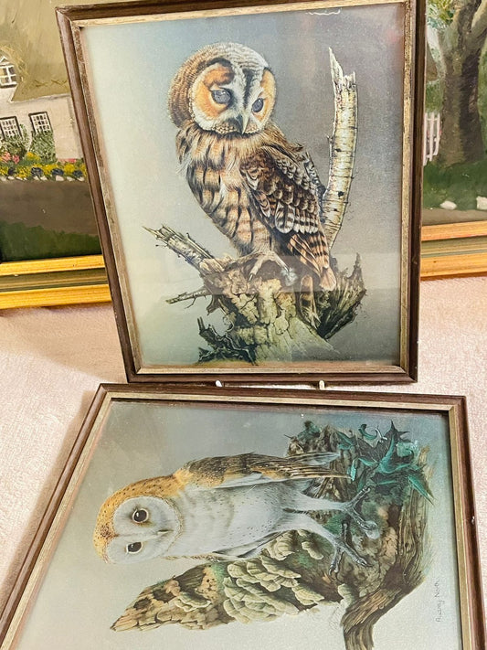Set of 2 Vintage Audrey North OWL Foil Lithograph Prints – 3D Illustration Framed Art