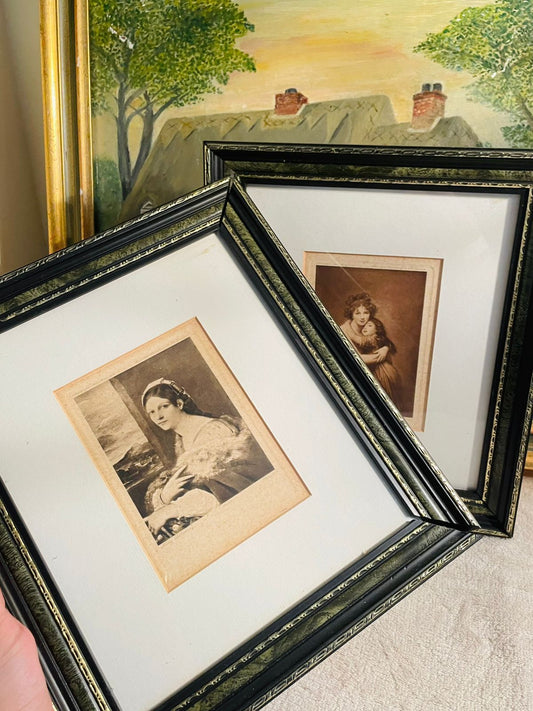 Set of 2 Vintage “Last Rose Of Summer Lady” Framed Prints & 1 Antique Self-Portrait Print by Elizabeth Louise Vigée
