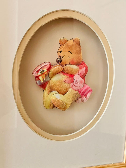 Disney 3D Layered large Wall Frame – Winnie the Pooh in Center with Brown Wooden Border