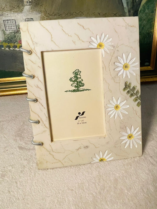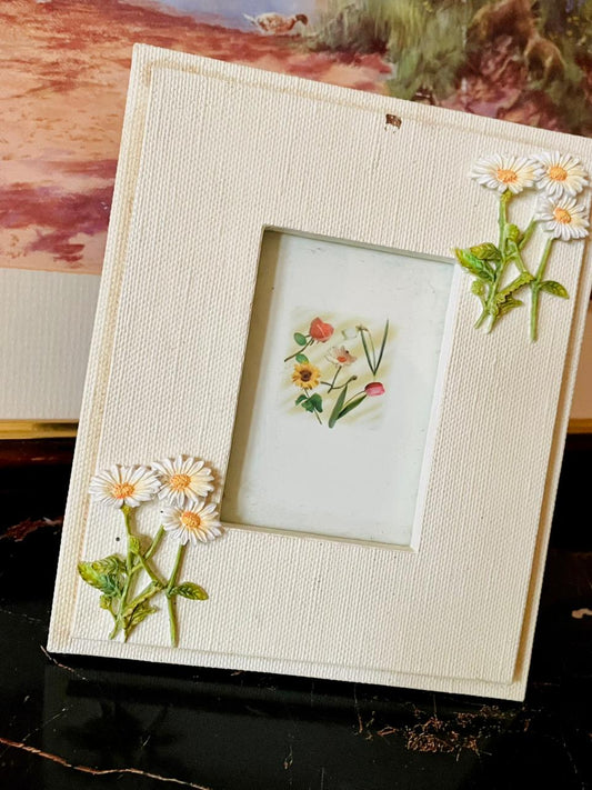 Vintage Floral Photo Frame – Cream with 3D Daisy Embellishments