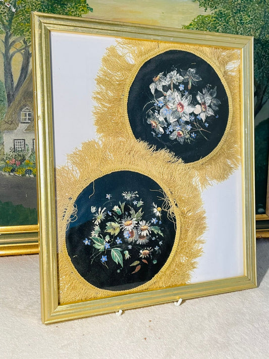 Set of 3 Vintage Gold Gilt Wood Frames – Sunflower Embroidered & Painted Floral Art | Ornate Wall Decor Pakistan