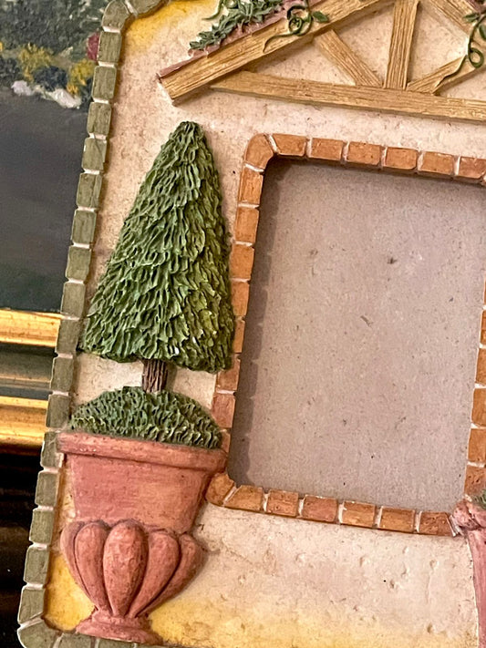Vintage Cottage Garden Photo Frame – Ceramic Floral Pots Design
