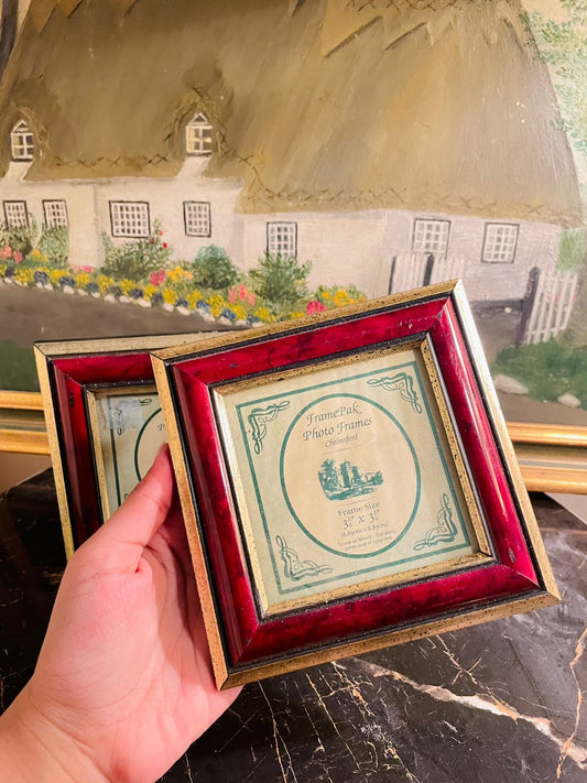 Set of 2 Antique Wooden Gold-Tone Red Velvet Rectangle Frames – Vintage Decor