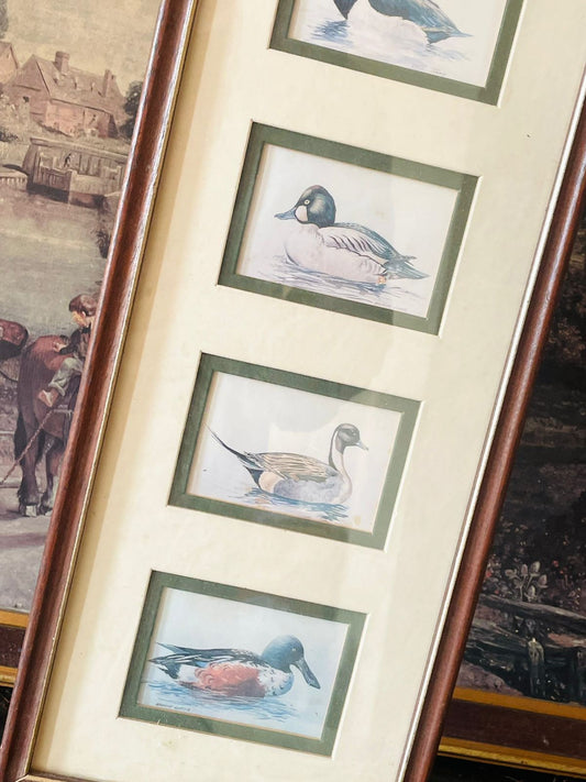 Vintage Framed Duck Illustration Art – Set of Four Prints in Single Frame (England)