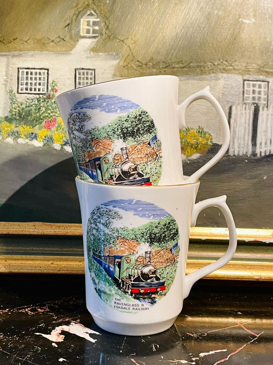 Set of 2 Vintage Bone China Mugs – The Ravenglass & Eskdale Railway Scenic Train Design