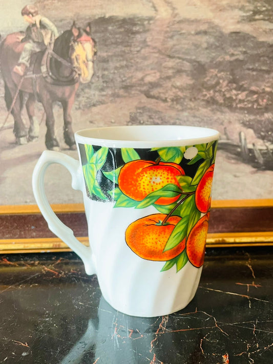 (Vibrant Citrus Charm) PSL Porcelain Mug – Hand-Painted Orange Grove Design