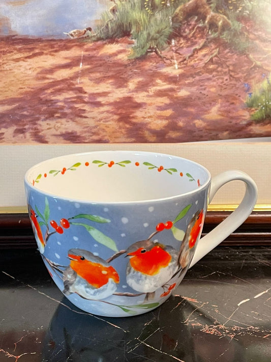 Set of 2 Robin Bird Winter Mugs – Festive Ceramic Cups, Soup Mugs