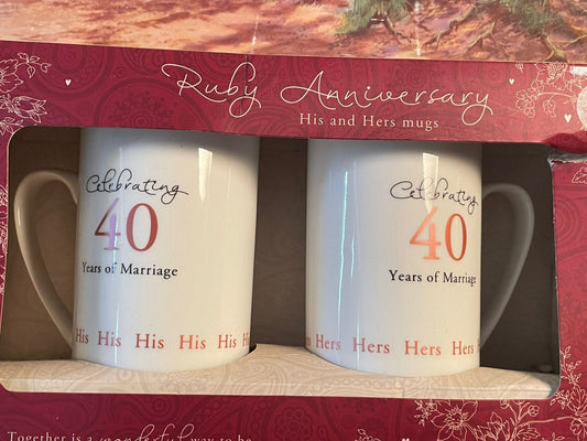 Ruby Anniversary “His & Hers” Mugs – Celebrating 40 Years of Marriage