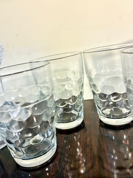 Vintage Bubble-Patterned Glass Tumblers – Set of 4