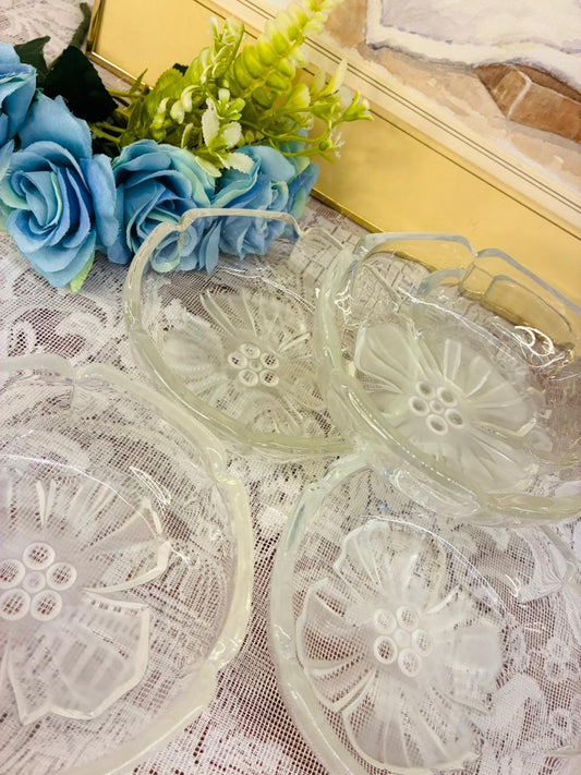Set of 4 Vintage Frosted Glass Floral Bowl