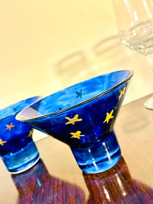 Vintage Blue Glass Star Bowl Set – Elegant Decorative Bowls