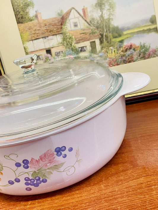 Corning France Floral Glass Casserole Dish with Lid β 27cm β Vintage