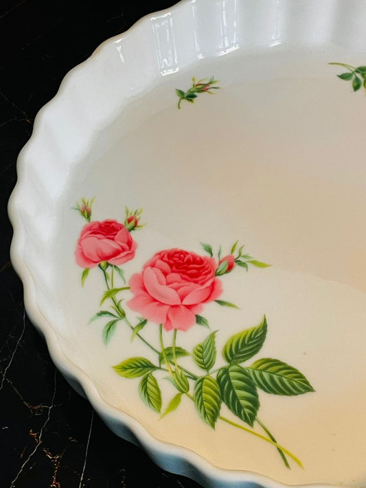 Vintage Rose Floral Fluted Pie Dish β Cottagecore Serveware