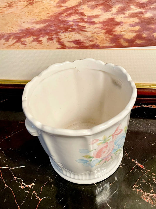 Vintage England Floral Ceramic Planter β White Glazed Pot with Pastel Flowers