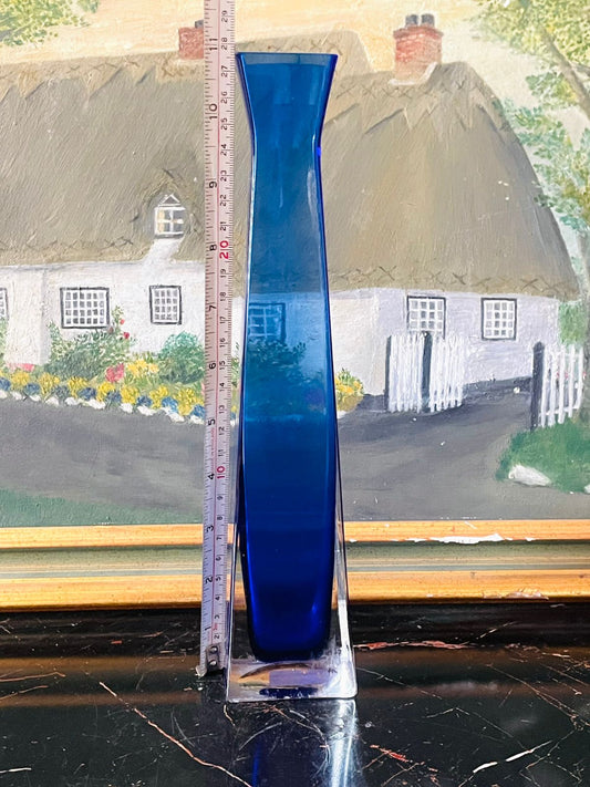 Vintage Cobalt Blue Crystal Vase β Tall Scandinavian Style Glass Decor
