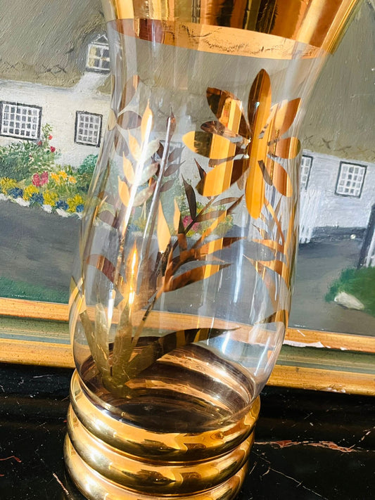 Vintage Hand-Gilded Glass Vase β Floral Etching with 24K Gold Detailing