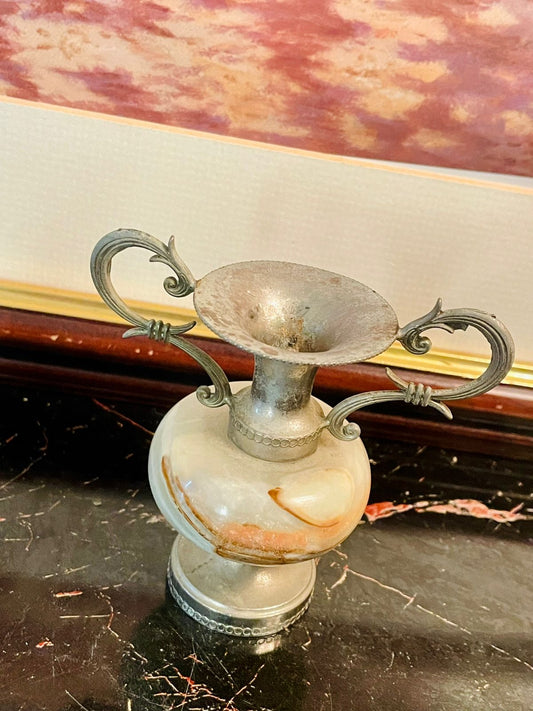 Vintage Miniature Onyx Stone & Metal Decorative Vase β England