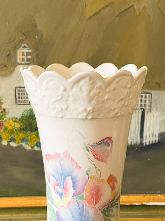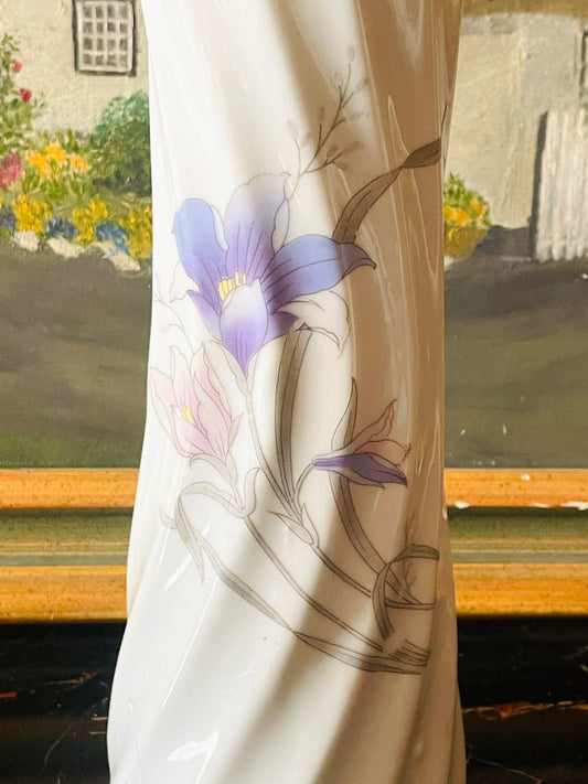Vintage English Porcelain Vase with Purple Iris Floral Design