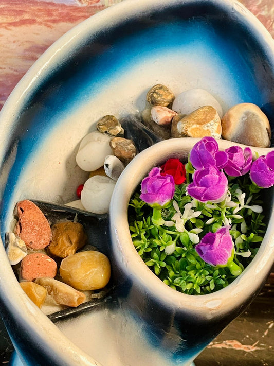 Ceramic Wave-Shape Planter with Decorative Stones & Artificial Flowers β England