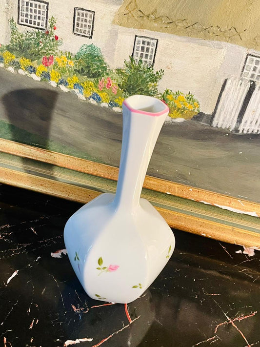 Porcelain Slim Neck Vase β Pink Rosebud Floral Design (15 cm, England)