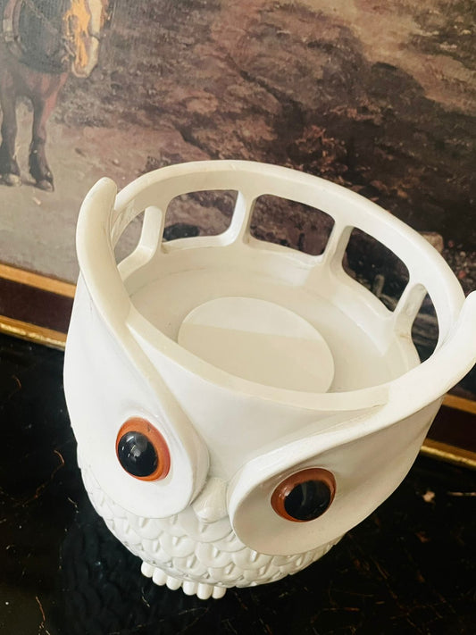 Vintage Ceramic Owl Planter / Utensil Holder β Gloss White Textured Design