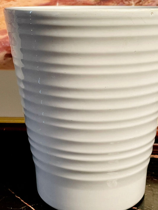 Large White Ribbed Ceramic Planter β Minimal Modern Indoor Flower Pot