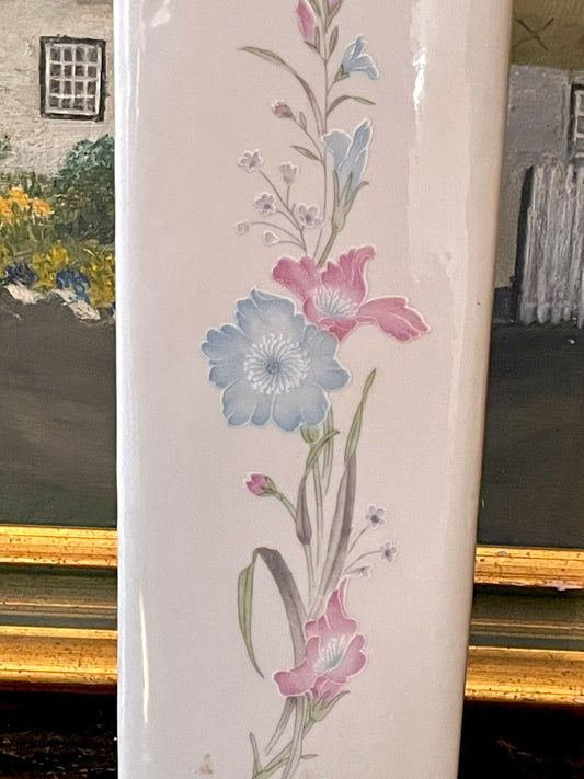 Vintage Wall hanging vase - Floral Rectangular Ceramic Vase β Pastel Pink & Blue Blossoms (England)