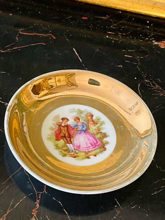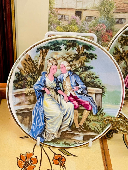 Vintage Romantic Courting Couple Decorative Plate – Gold-Tone Border, Fragonard Style