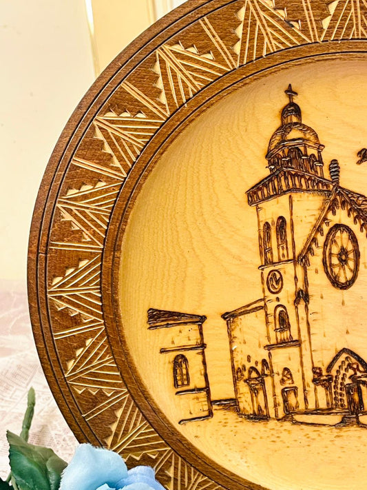 Vintage Moldova Wooden Wall Plate Handcrafted 11”