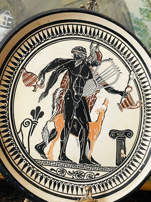 Vintage Terracotta Pottery Plate – Hand-Painted Warrior Scene Decorative Wall Art – Made in England