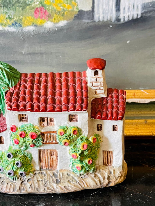 Handcrafted Spanish Cottage House Figurine — Vintage Terracotta Decor