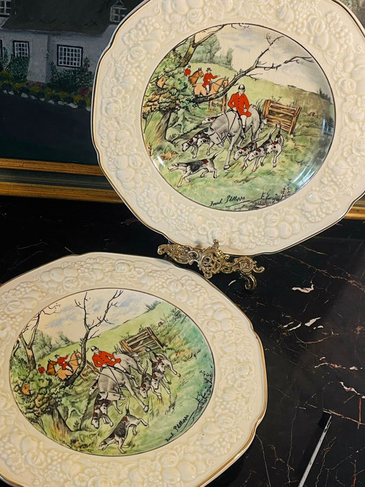 Set of 2 Vintage Large Crown Ducal “The Hunt” Wall Plates – Frank Phillips, England
