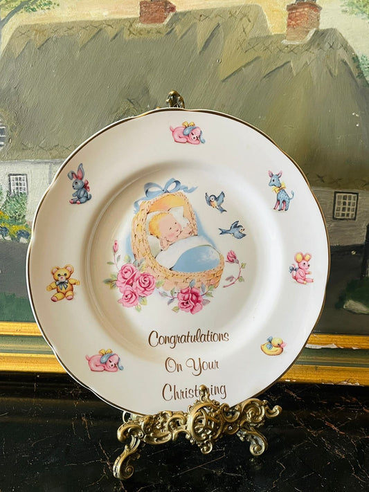 Polly-Anna Fine Bone China White Decorative Christening Plate – Vintage Keepsake Gift