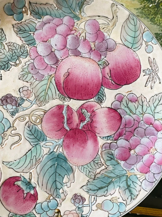 Vintage Chinese Porcelain decor Plate – Hand-Painted Peaches & Grapes Design – H.F.P. Macau