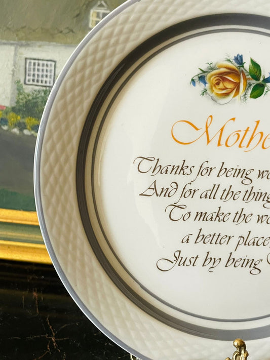 Mother Decorative Plate – Floral Design with Heartfelt Poem – Vintage Porcelain Gift